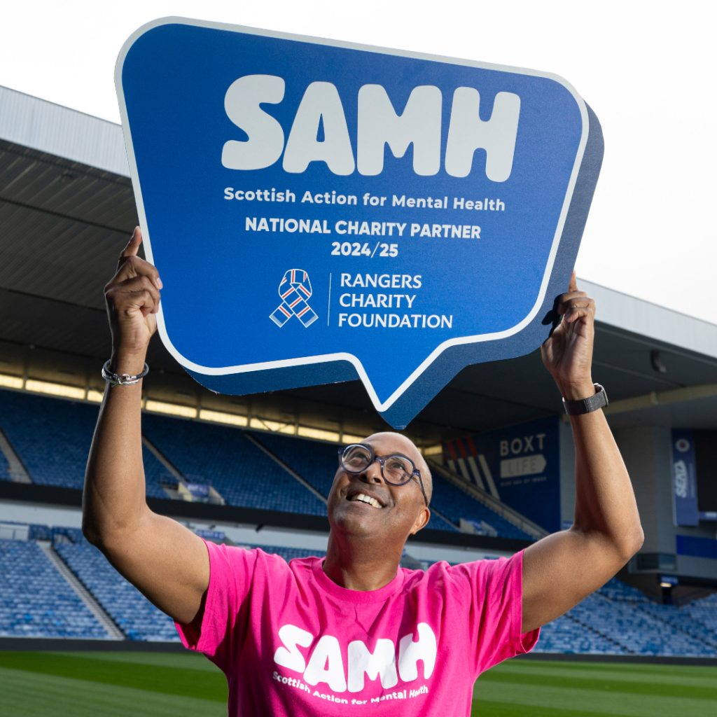 Other activities throughout the season included the SAMH Wellbeing on Wheels bus visiting a game at Ibrox, signposting to services, tips on how everyone can look after their own mental health, information posters around Ibrox and a special video with the women’s team on how important it is to open up and talk.