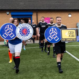 The CashBack team, supported by Rangers Charity Foundation staff, was captained by Chloe Pert – who also scored a penalty for the team and received the ‘Player of the Match’ for her efforts.