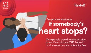 RevivR, which can be accessed HERE, makes it quick and easy to learn CPR in just 15 minutes for free and aims to give people the skills and confidence they need to save a life.
