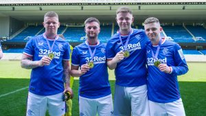 The cost to play is £375, with a £150 non-refundable deposit required when booking. The remainder can be paid right up until Friday 16th May. Players can either choose to pay the fee themselves or fundraise. Those who fundraise an additional £150 on top of the match fee will qualify for a True Blue Hero Medal which will be presented by a first team player at a reception at Ibrox later in the year.